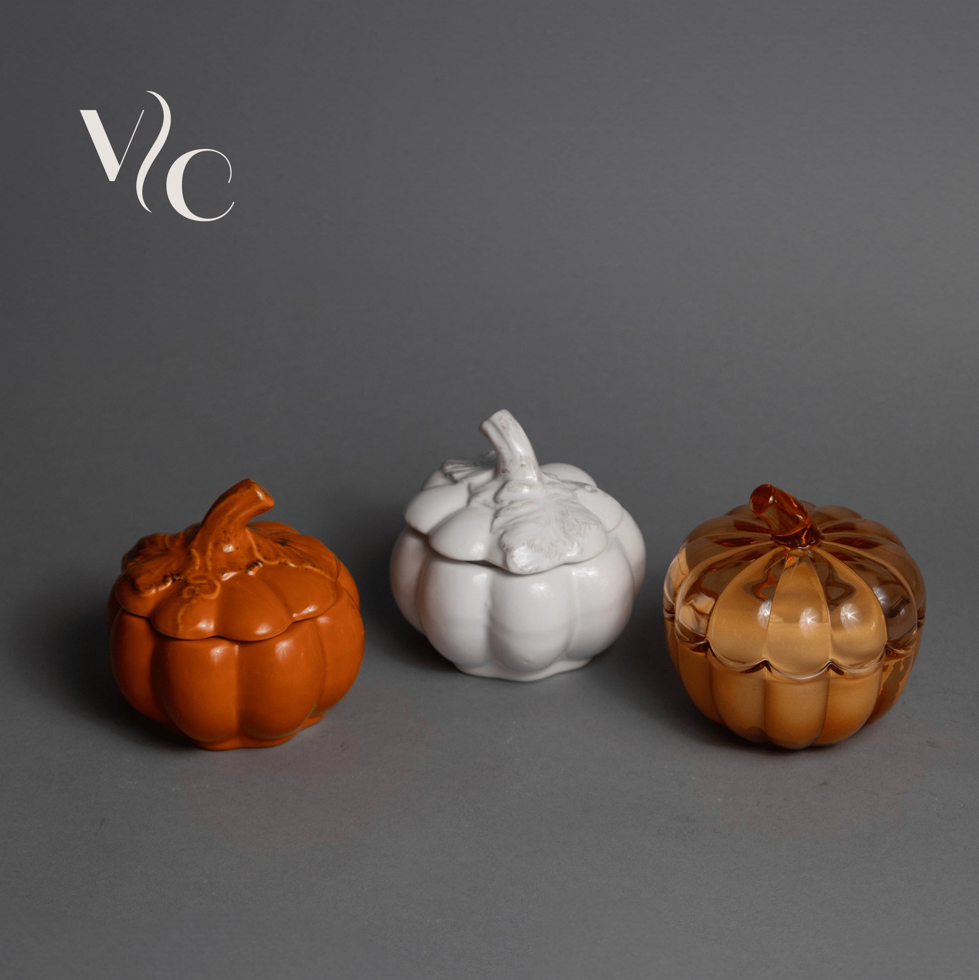 • Design: Adorable pumpkin-shaped ceramic container with a glossy finish and a removable lid